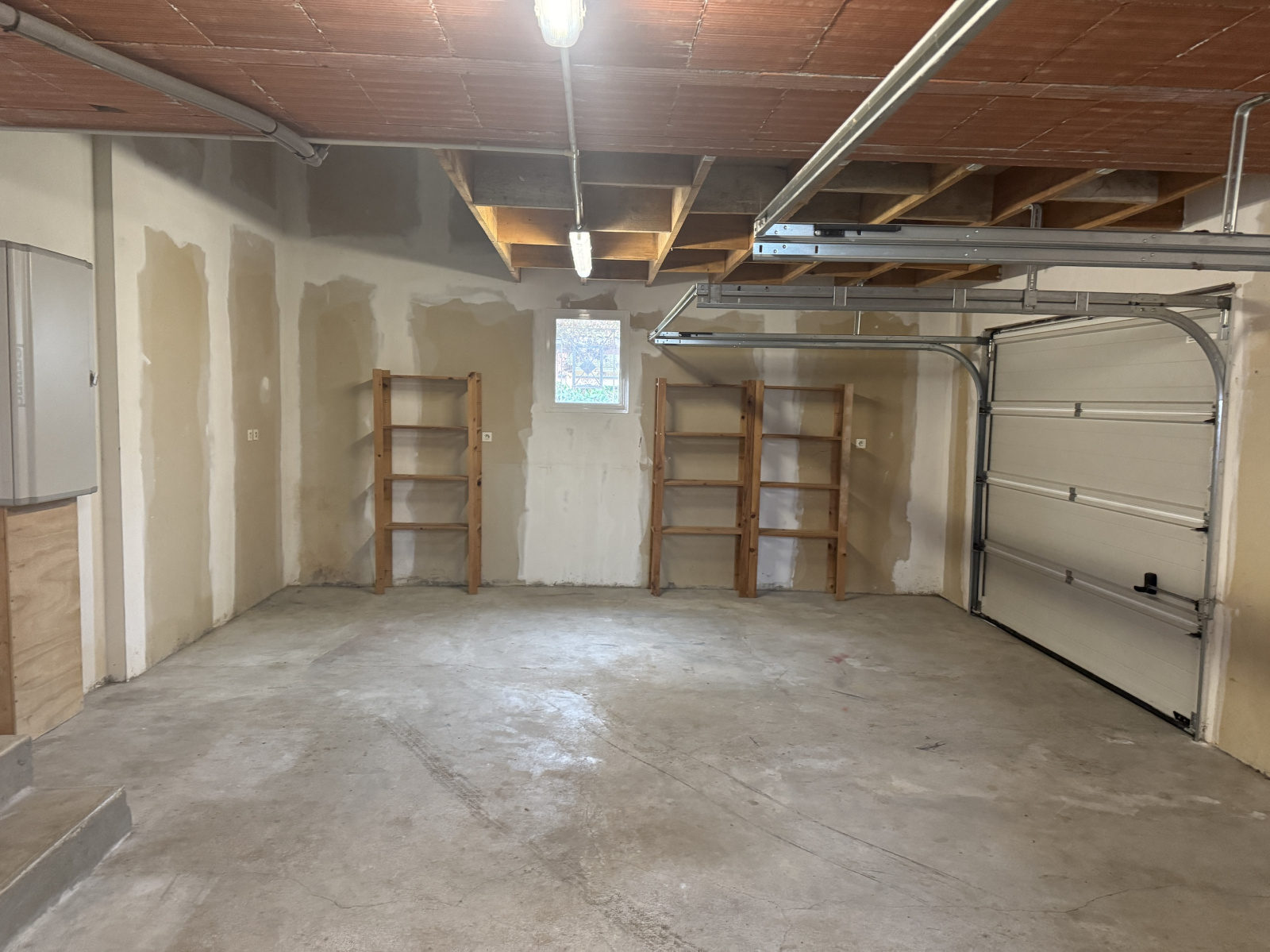 Composée au rez-de-chaussée d'une entrée, d'une cuisine séparée, aménagée et équipée et d'une grande pièce à vivre donnant accès à la terrasse, d'un WC séparé, d'une buanderie donnant accès au grand garage de plus de 40 m2 avec double portes d'accès, de 2 chambres avec placards et d'une salle de bains avec douche, baignoire, vasque et WC ;